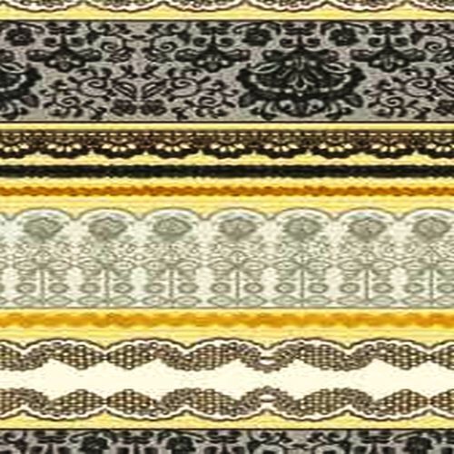 $6.95/Metre -Le Jardin French Lace Stripe Yellow Grey 303 AU