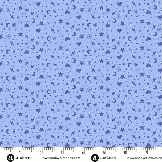 Perfect Day by Libs Elliott for Andover Fabrics is a bold, modern collection featuring striking geometric designs and vibrant colour combinations. This Charm Toss print in blue features a scattered mix of stars, moons and abstract motifs, creating a fresh and energetic design perfect for quilts, statement bags and contemporary sewing projects.