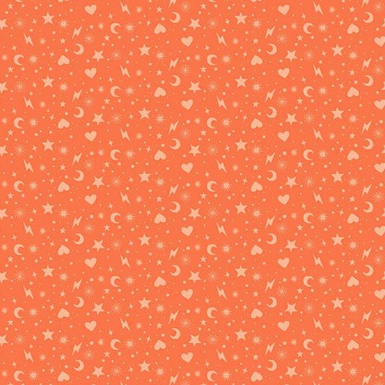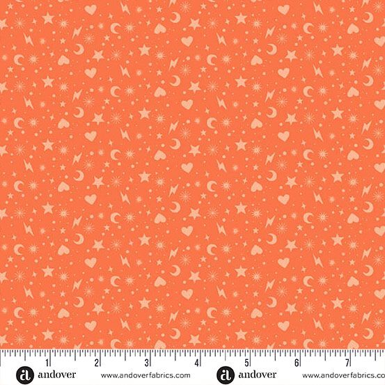 Perfect Day by Libs Elliott for Andover Fabrics is a bold, modern collection featuring striking geometric designs and vibrant colour combinations. This Charm Toss print in orange features a scattered mix of stars, moons and abstract motifs, adding movement and energy to quilts, statement bags and contemporary sewing projects.