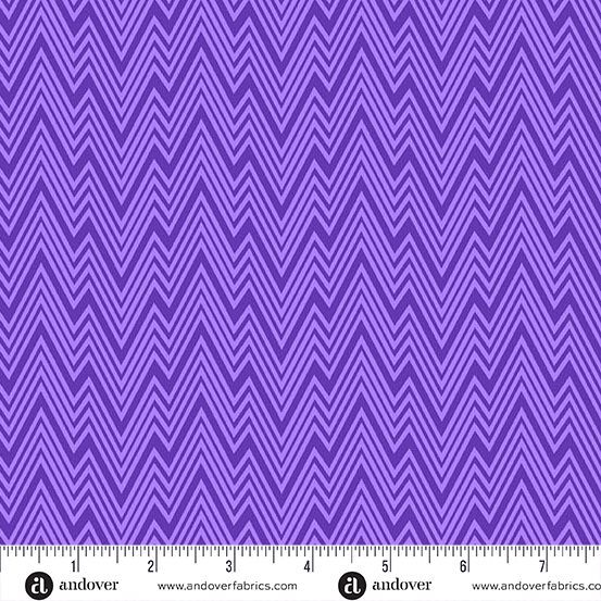 Perfect Day by Libs Elliott for Andover Fabrics is a bold, modern collection featuring striking geometric designs and vibrant colour combinations. This Zigziiig print in purple features a sharp chevron-style pattern with layered tonal lines, creating strong movement and visual impact ideal for quilts, statement bags and contemporary sewing projects.