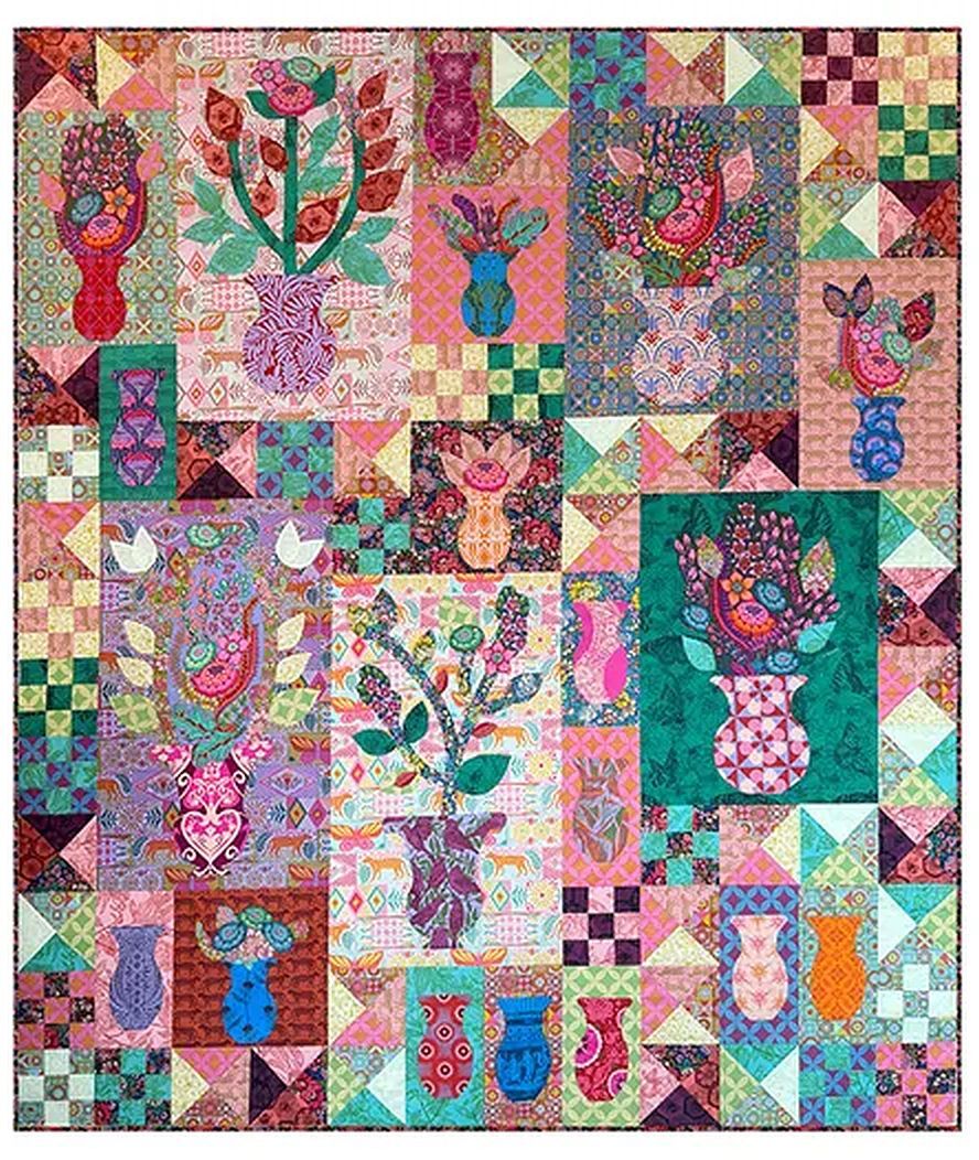 Collection: Rhapsody Designer: Anna Maria Parry Kit: Rhapsody SKU: KIT-RHPSDY Size: 72" x 84" Skill Level: Advanced Beginner Technique: Traditionally Pieced and Applique