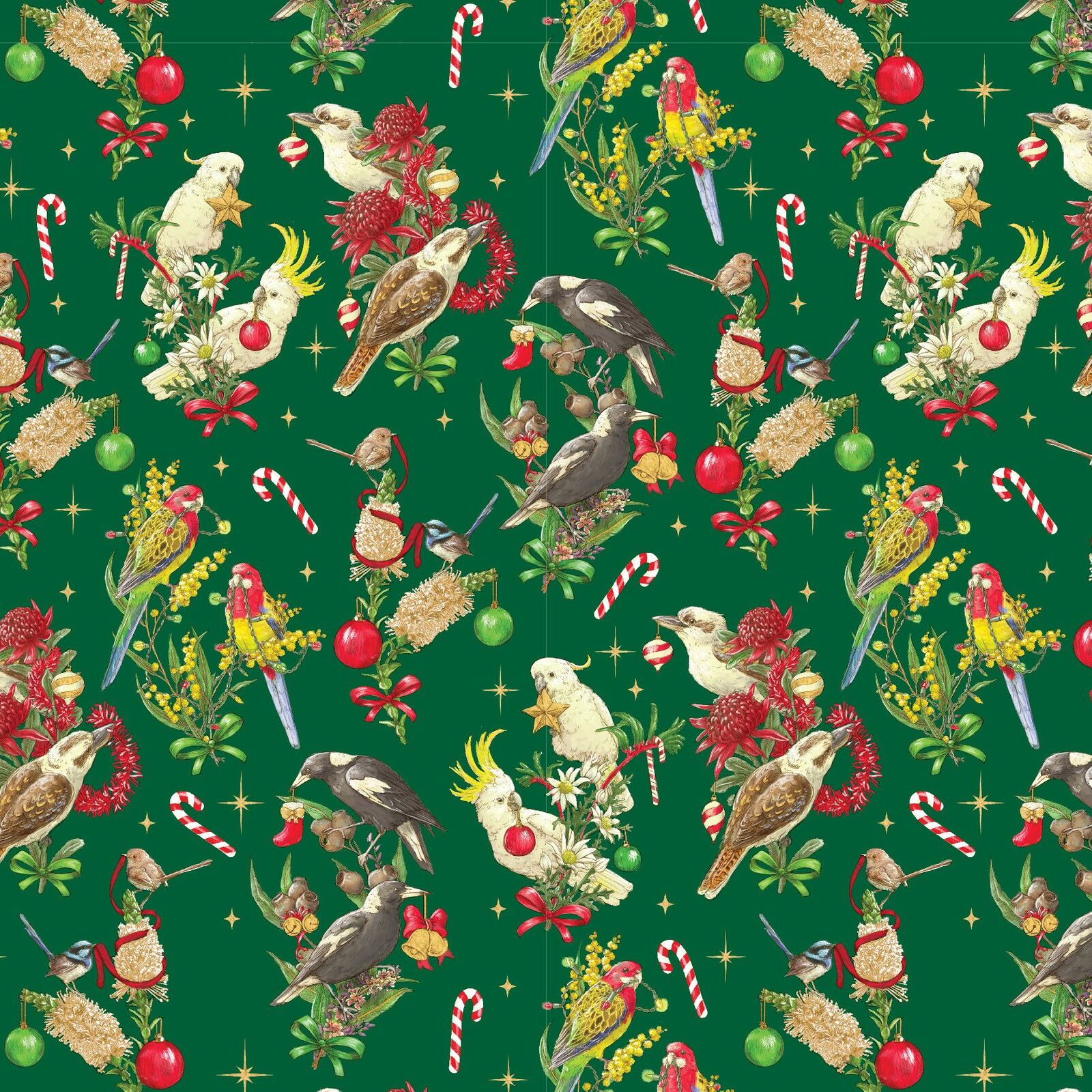 Aussie Christmas Bush Birds Green DV3155