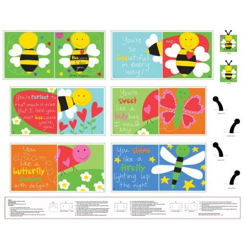 Huggable soft book fabric panel features adorable bees and instructions to make a cute soft book to treasure