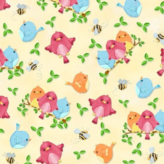 Birds n Bees fabric by Henry Glass and Co features adorable birds and bees on yellow