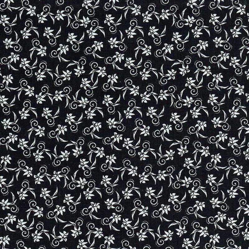 Black White Collection quilt fabric by Kennard and Kennard features flowers in black and white