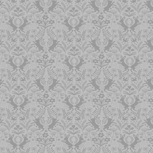 Salisbury Springs quilt fabric by Lewis and Irene features bunny rabbits and flowers on grey. Great for Easter projects