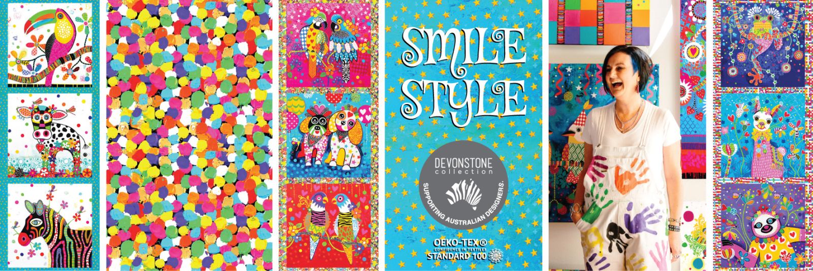 Smile Style by Donna Sharam is a bold, joyful fabric collection created by an Australian artist known for her vibrant colour palettes and playful, hand-painted designs. This feel-good range features whimsical animals, hearts, stars, stripes and expressive painterly textures, all designed to spark creativity and make your projects smile. Perfect for quilts, bags, kids’ sewing, art quilts and statement makes that celebrate colour and fun.