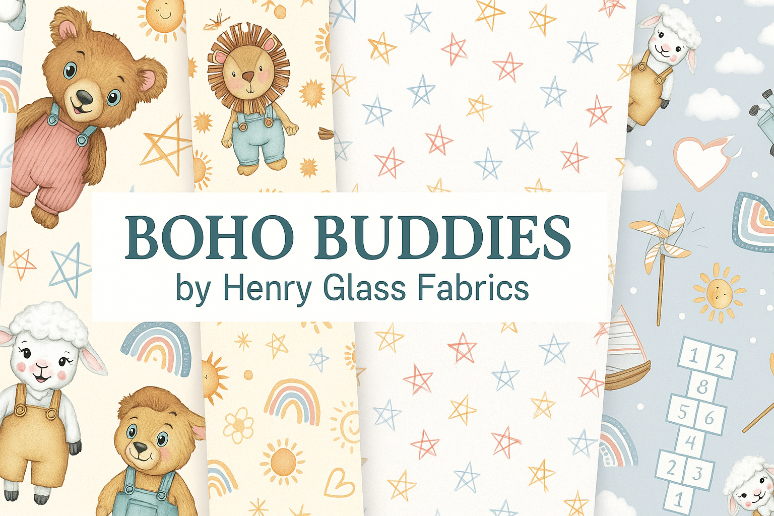 Say hello to Boho Buddies by Henry Glass Fabrics – the sweetest collection of cuddly friends, rainbows, suns, stars and inspirational panels. Perfect for quilts, nursery décor, bags, and handmade gifts