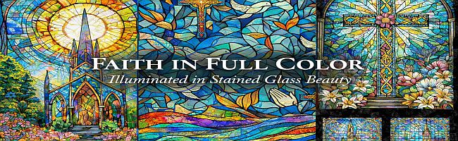 Bring radiant stained-glass beauty into your sewing room with Faith in Full Color by City Art Studio for Henry Glass — featuring lilies, doves, gridded glass prints and a breathtaking church panel.