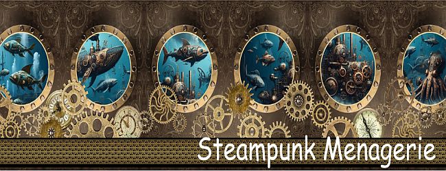 Welcome to a world where engineering meets imagination — where jungle creatures are reborn through gears, brass plating, clockwork hearts and mechanical wings. Steampunk Menagerie is a breathtaking fusion of wildlife and industry, featuring panels, portrait squares, underwater portholes, all-over maps, cogwork textures and gritty metallic coordinate prints.