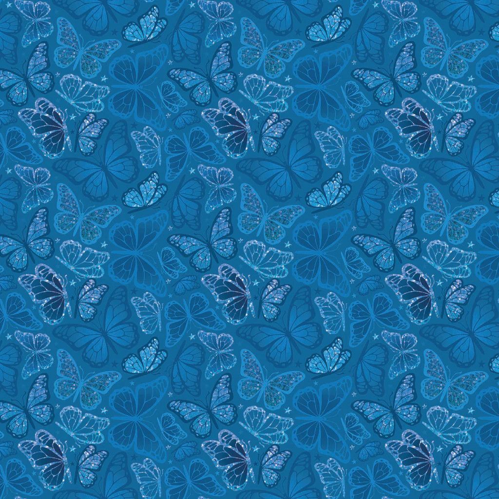 Disco Queen Fabric Collection by Camelot Fabrics. A cool-toned butterfly coordinate with shimmering textures and tonal layering. Beautiful for borders, quilts and apparel projects.