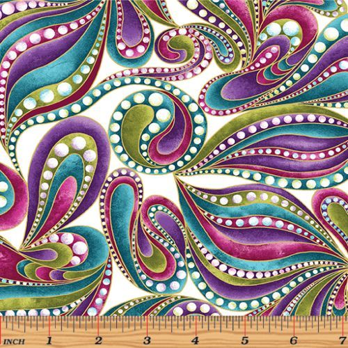 Cat-I-tude by Ann Lauer for Benartex paisley swirls in multicolours on white