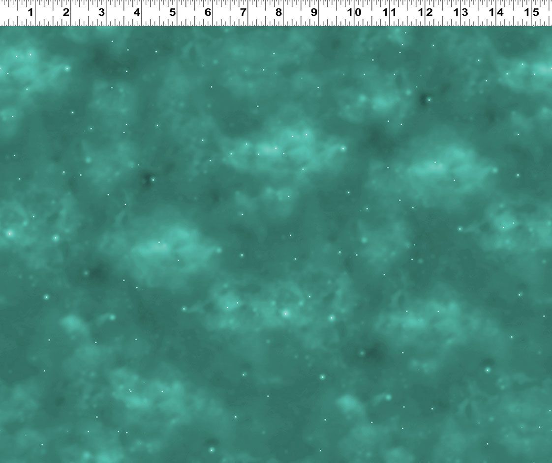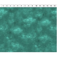 A dreamy teal blender from the Unicorn Magic collection by Anne Stokes for Clothworks, featuring a soft digital sky effect scattered with delicate glowing stars — perfect for backgrounds, sashing, and adding a magical finish to quilts, bags, and sewing projects.