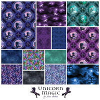 From the Unicorn Magic collection by Anne Stokes for Clothworks, a stunning strip roll featuring 2.5-inch precut strips in a mix of coordinating designs including unicorn scenes, crystals, stars, and ornate textures—perfect for quilting, strip piecing, and fast, creative sewing projects.