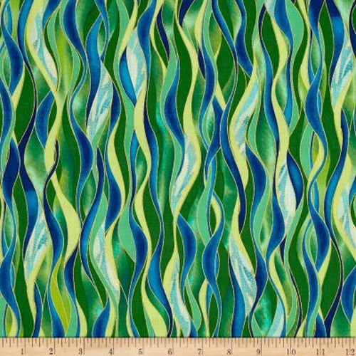 Dance of thr Dragonfly by The Kanvas Studio for Benartex dancing waves emerald with metallic gold highlights