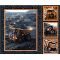 Coops Farm by Devonstone features large-scale dump trucks and mining scenes. A standout piece in the Big Boys Toys series from Devonstone. Perfect for feature quilts, framed art, cushions and themed décor for machinery fans.