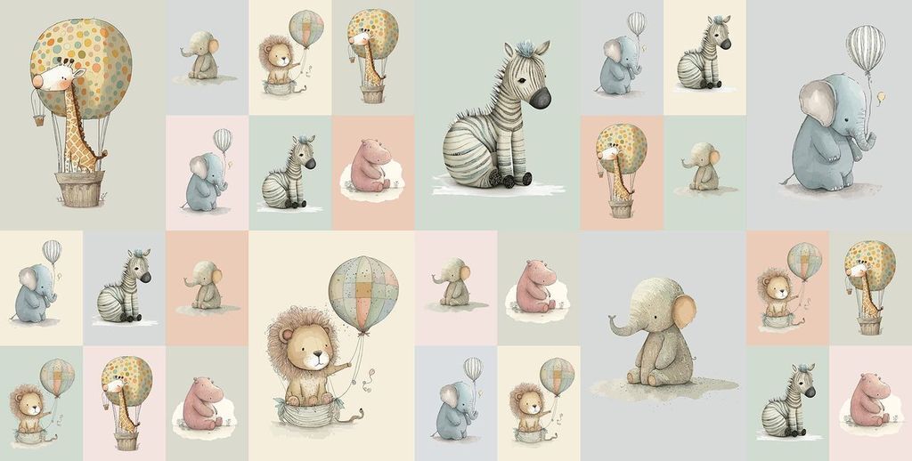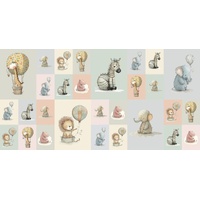 Postcard Panel by Devonstone is a delightful nursery panel featuring a collection of soft watercolour animals including lion, giraffe, elephant, zebra and more, arranged in postcard-style blocks. Designed in calming pastel tones of sage, blush, soft blue and warm neutrals, this panel is perfect for baby quilts, nursery décor, framed wall art, cushions or handmade gifts. Each individual block can be cut and used on its own or combined to create a charming cot quilt or play mat. A beautifully versatile panel for quick projects or creative fussy cutting.