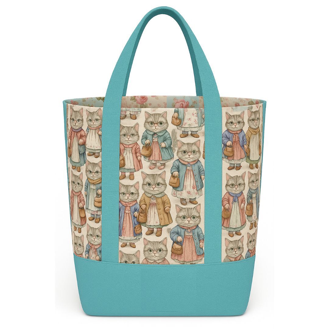 Esther & Eddie designer Fabric by Devonstone . Sew your own gorgeous reusable grocery or library bag using this adorable cat themed fabric and coordinates