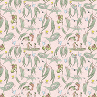 May Gibbs – Garden Playtime by Devonstone Collection – A charming pink allover gumnut baby print with soft native foliage and delicate blossoms. A lovely choice for baby quilts, clothing, patchwork and nursery décor.