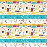 A fun alternating stripe design featuring colourful farm scenes, animals, barns, wagons, fields and scattered motifs. Excellent for quilt borders, bindings, pillowcases, feature panels and children’s craft projects.