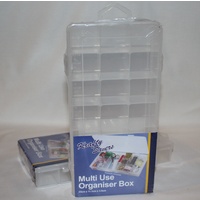 Double sided plastic sewing organsier, perfect for bobbins, buttons, trinkets - 16 individual compartments. Measures 12cm x 9cm