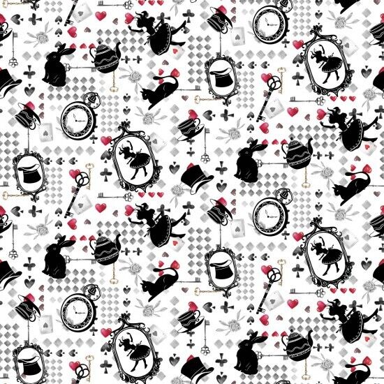 Fabric Remnant |Alice in Wonderland Silhouettes (72cm x 112cm)