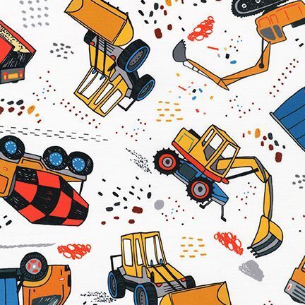 Fabric Remnant | Build,Bang,Boom! Construction Trucks (90cm x 112cm)