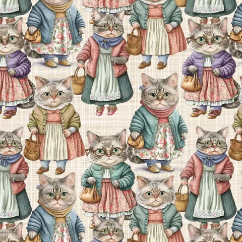 Fabric Remnant | Devonstone | Esther & Eddie Grandma Cats (66cm x 112cm)