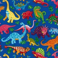Fabric Remnant | Dinosaur Dance Blue (48cm x 112cm)