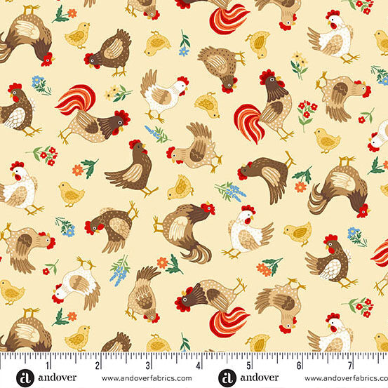 Fabric Remnant |Fun on the Farm Chickens Roosters (63cm x 112cm)