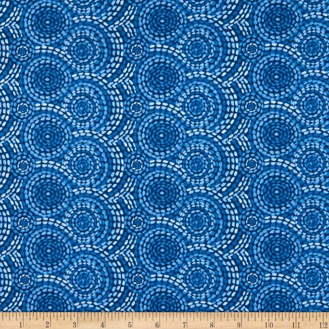 Fabric Remnant | Gypsy Dreams Stitched Circles Blue (78cm x 112cm)