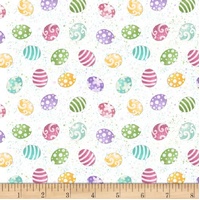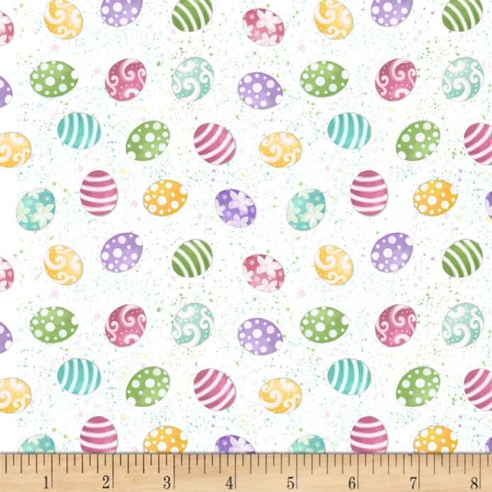 Fabric Remnant | Hoppy Easter Mini Tossed Eggs White (50cm x 112cm)