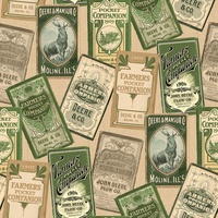 Fabric Remnant | John Deere Tractors Labels Postcards (52cm x 112cm)