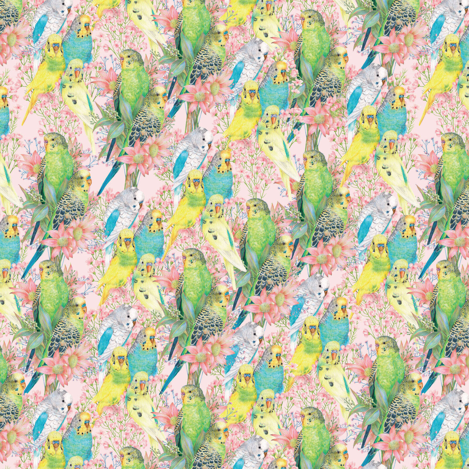 Fabric Remnant |Kayla Reay Budgerigars Budgies (80cm x 112cm)