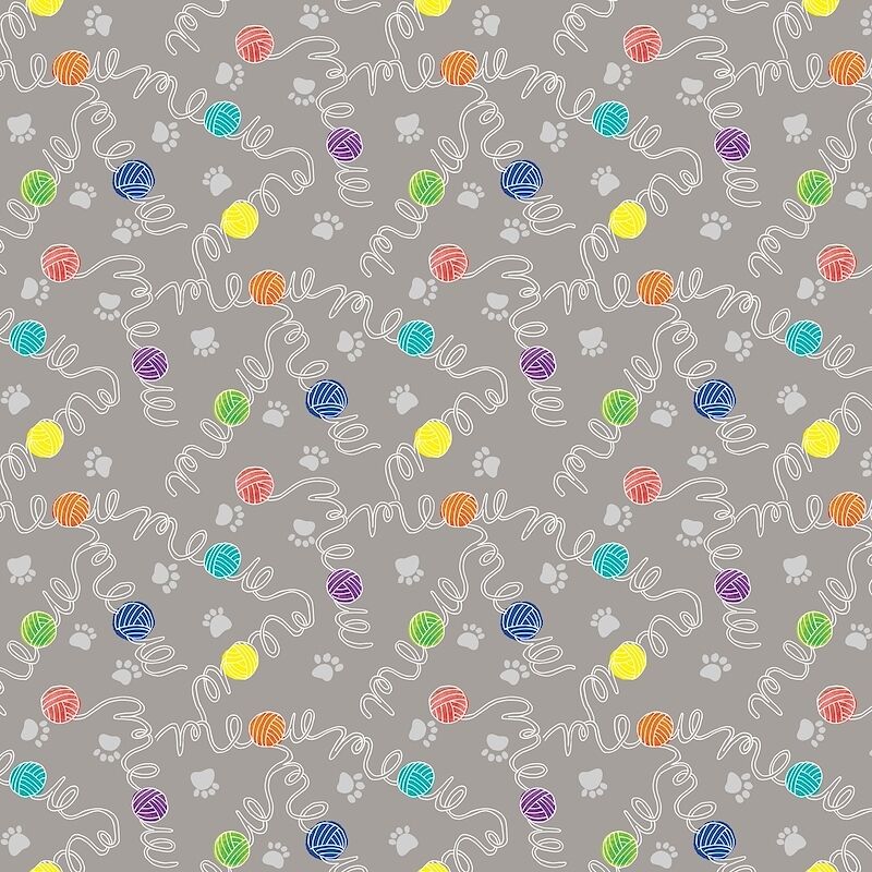 Fabric Remnant | Meow Yarn Wool Balls Grey (80cm x 112cm)