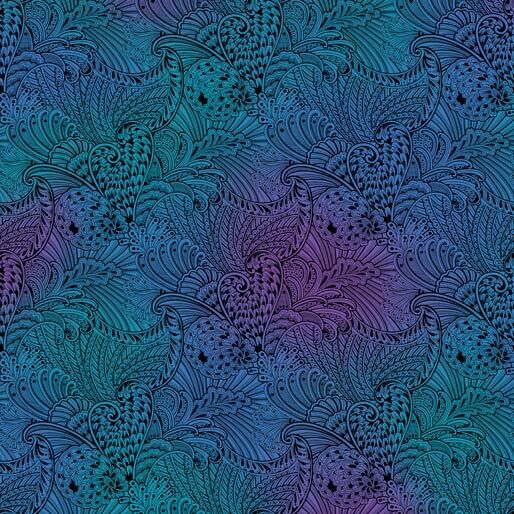 Fabric Remnant | Peacock Flourish Mottled Multi Wide Back (34cm x 270cm)