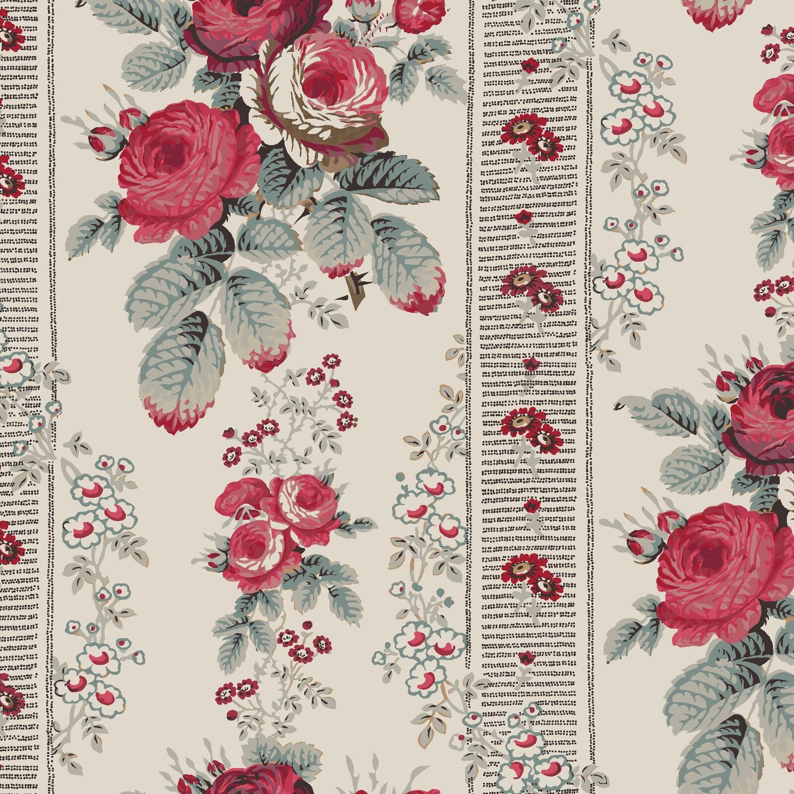 Fabric Remnant | Rue Floriane Rose Border Stripe (73cm x 112cm)