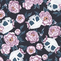 Fabric Remnant | Skulls Flowers Graphite (53cm x 112cm)