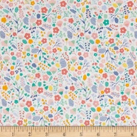 Floral Splendor by  Cathy Nordstrom for Andover features orange, teal, lavender and pink flowers on white