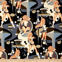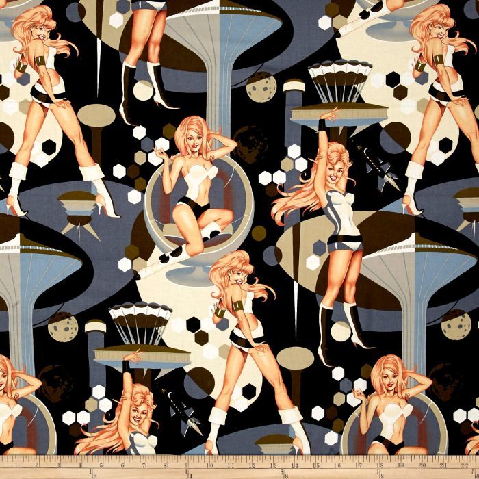 Future-Ella fabric by Alexander Henry features pin up girls from the future