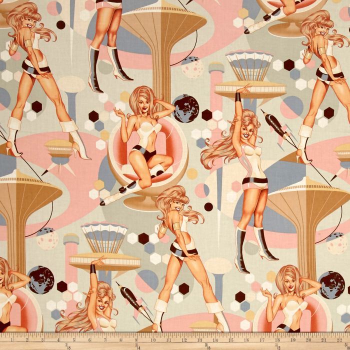 Future-Ella fabric by Alexander Henry features pin up girls from the future
