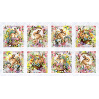 Create a stunning feature quilt or individual projects with the Bunny Block Panel Multi from the Basket Full of Blessings collection by Henry Glass. This beautifully illustrated panel features eight detailed bunny blocks framed with soft coordinating backgrounds, each showcasing charming storybook-style rabbits nestled among florals, baskets and delicate garden elements. Perfect for quick quilts, wall hangings, cushions, nursery décor or centrepiece blocks, this panel captures the full pastel palette and intricate artwork of the collection while pairing effortlessly with the coordinating florals, plaids and stripe prints for borders and sashing.