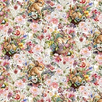 Make a beautiful statement with Bunny Floral Bouquet Cream from the Basket Full of Blessings collection by Henry Glass. This richly detailed print features charming bunnies nestled within abundant floral bouquets, blending soft pinks, fresh greens and delicate pastels across a warm cream background to create a stunning feature fabric perfect for quilt centres, focal blocks, nursery projects and seasonal décor. The layered florals and storybook-style artwork give this design depth and elegance while coordinating seamlessly with the plaids, scenic prints and blenders in the range.