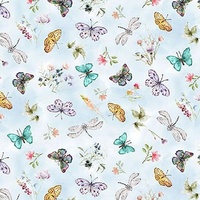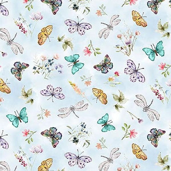 Butterfly & Dragonfly Toss on Soft Blue Quilting Cotton