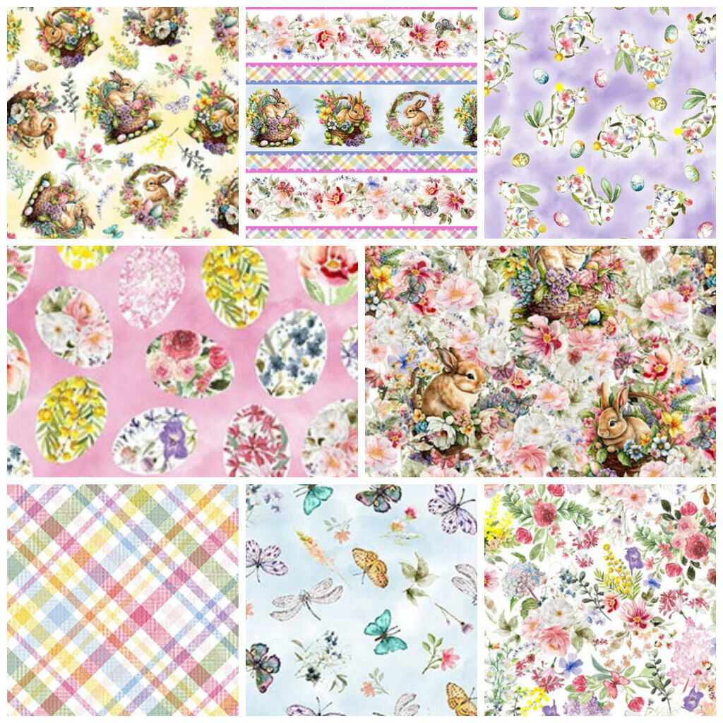 Enjoy the full charm of the Basket Full of Blessings collection by Henry Glass with this beautifully coordinated 8 piece Fat Quarter Bundle. Featuring a curated selection of florals, bunny prints, scenic designs, plaids and soft seasonal coordinates, this bundle captures the gentle pastel palette and storybook feel of the range in perfectly balanced proportions. Ideal for quilts, small projects, patchwork, seasonal décor and stash building, these prints work effortlessly together to create a cohesive and uplifting finish. A lovely option for Easter sewing, nursery projects or anyone who adores soft garden-inspired fabrics.