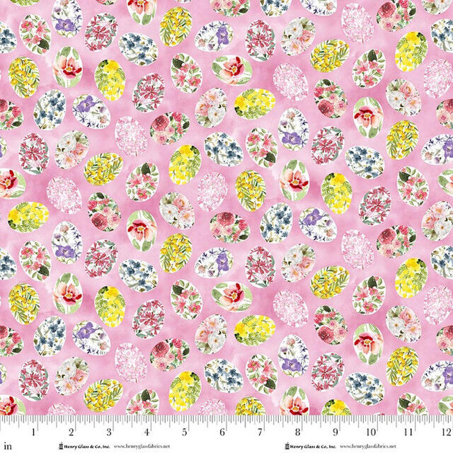 Add a sweet seasonal touch to your next project with Floral Egg Medallions Pink from the Basket Full of Blessings collection by Henry Glass. This charming print features delicate floral-filled egg shapes scattered across a soft pink background, blending gentle pastels and garden-inspired tones into a beautifully coordinated design that works perfectly for Easter quilts, children’s projects, table runners, gift bags and heartfelt handmade décor. A lovely feature or coordinating fabric that pairs effortlessly with the rest of the collection.