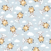 Boho Buddies by Henry Glass Fabrics – Lions on cream. This soft quilting cotton features whimsical lions in overalls with suns and stars, ideal for quilts, kids’ projects and décor.