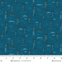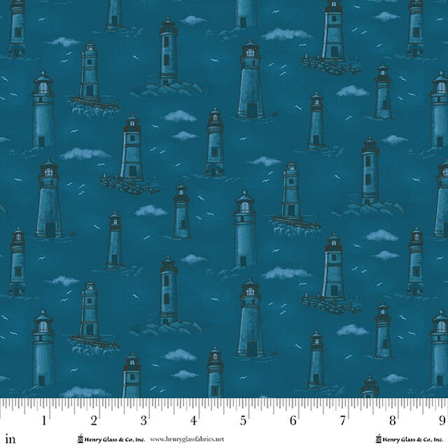 Coastal Gaurdians by Henry Glass Fabrics features repeated lighthouse illustrations — perfect for seaside-themed quilts, pillows, tote bags, beach house décor and coastal nursery projects. The print evokes the tranquility and mystery of lighthouses by night and the romance of coastal living.