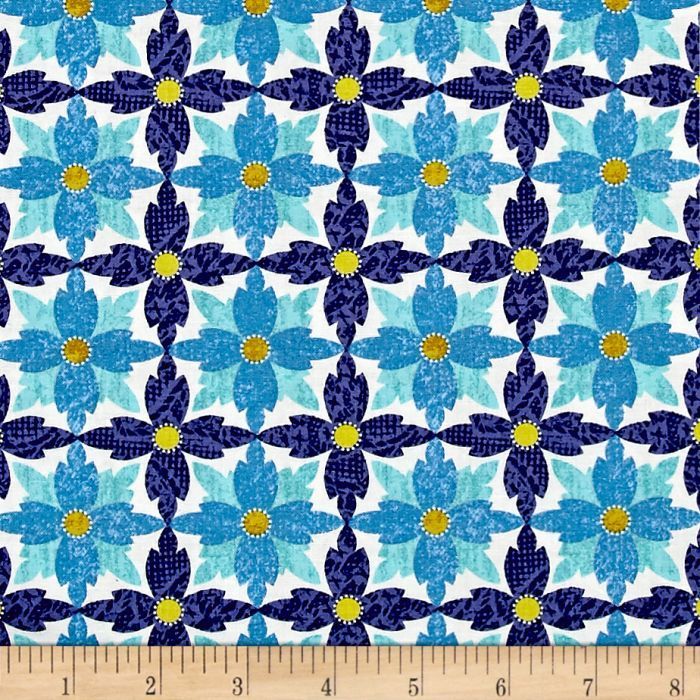 Indian Summer quilt fabric by Michael Miller features stylised flowers in blue