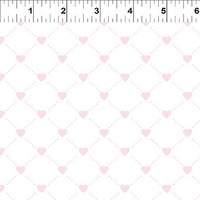 Alice Fabric Collection by Janson Yenter for In the Beginning Fabrics. A delicate lattice of soft pink hearts on a clean white background. Hearts White is a gentle low-volume print, perfect for backgrounds, sashing, baby quilts and romantic projects. Adds lightness and balance across the Alice collection.